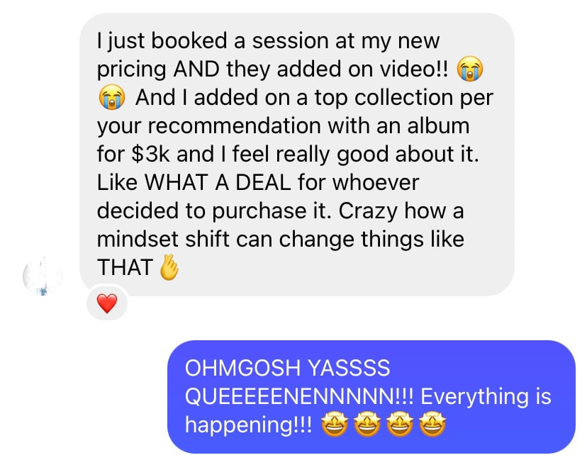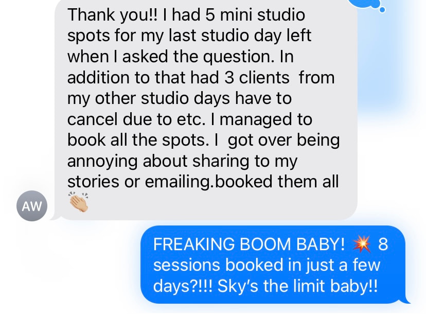 A mentor who will fight for your artistry + massive biz success -you won't hear me putting myself on a pedestal as a special unicorn or saying that it's a saturated market or that charging a certain price isn't 'realistic.' The sky is the limit and I'm here to help you go to the moon, baby!